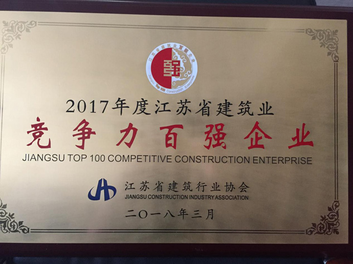 2018年3月28日,江苏省建筑行业“双百强”评选揭晓,我公司以良好的综合指标被评为2017年度江苏省建筑行业竞争力百强企业。公司将以这一次获奖为契机,进一步深入学习国务院办公厅《关于促进建筑业持续健康发展的意见》和《省政府关于促进建筑业改革发展的意见》精神,加快推进企业深化改革和转型升级,再接再厉,再创佳绩!
